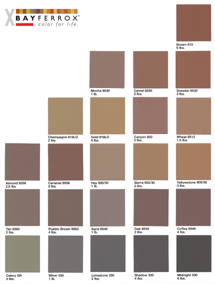 Bayferrox® Lanxess Colors for Ready Mix Concrete Chart